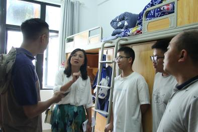 学生科周泉老师一早来到现场与新同学们进行亲切的交流,询问新生的家庭情况以及了解入学感受等。
