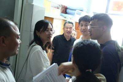 党委书记何璘带领2023级新生的班主任们走访了建工新生的寝室。在亲切问候的同时,何璘书记提醒同学们要提高警惕、谨防电信诈骗,还提醒建筑学与城乡规划专业的同学们积极准备即将到来的美术考试。