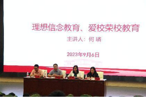 于2023年9月6日在图书馆报告厅开展2023年新生入学教育暨军训动员大会。学院党委书记何璘,党委副书记、院长王林均,党委副书记陆忠婷,学院跟班学习干部张搏出席会议,学院全体辅导员、研究生培养秘书、全体本科和研究生学生参加会议。会议由党委副书记陆忠婷同志主持。