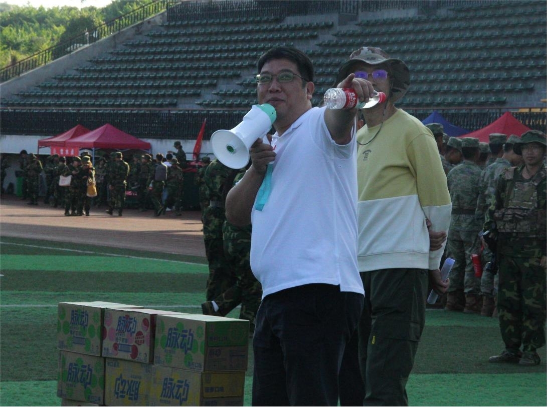 于九月十五日下午五点在大学城新校区田径场慰问四团三连、四连全体256名学生和教官,学院党委书记何璘,党委副书记、院长王林均,班主任牟勇忠,辅导员周泉、杜悠悠及学生会志愿者参与此次活动。