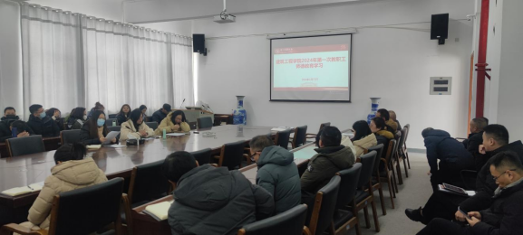 于2月27日在建工楼A504会议室召开2024年第一次教职工师德师风警示教育会议,会议由学院党委书记何璘主持,学院领导班子成员、全体教职工参加了此次会议。