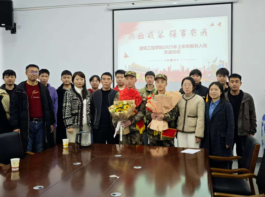在建工楼A504会议室举行2025年大学生春季入伍欢送会。学院党委副书记陆忠婷出席会议,入伍学生家长、学院辅导员、教师代表及在校学生代表参加欢送会,为即将踏上军旅征程的学子送上殷切祝福。