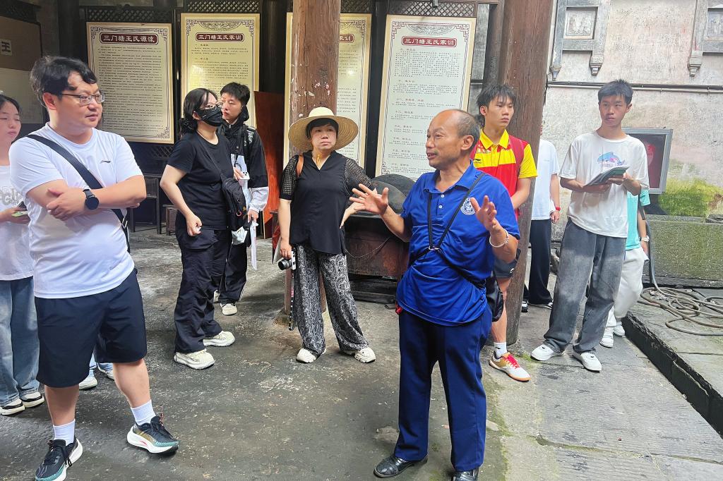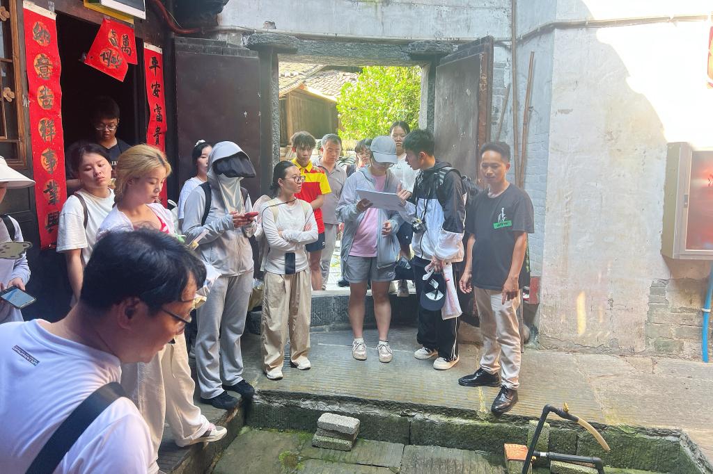 6日上午,在村支书带领下,师生们实地考察了三门塘村的传统建筑群。从始建于清代的刘氏宗祠,到保存完好的侗族吊脚楼,村支书生动讲解了每处建筑的历史渊源和文化内涵。调研期间,师生团队深入村寨调查,通过实地踏勘、建筑测绘、无人机航拍、入户访谈等多种方式,全方位采集村落空间形态、民居建筑特色、历史文脉传承及当下发展诉求等关键信息。