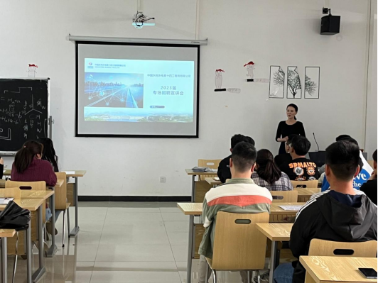 学生工作办公室主任乐筑怡老师及中国水利水电第十四工程局有限公司人力资源部负责人出席本次宣讲会,招聘会面向全体23届未就业毕业生。